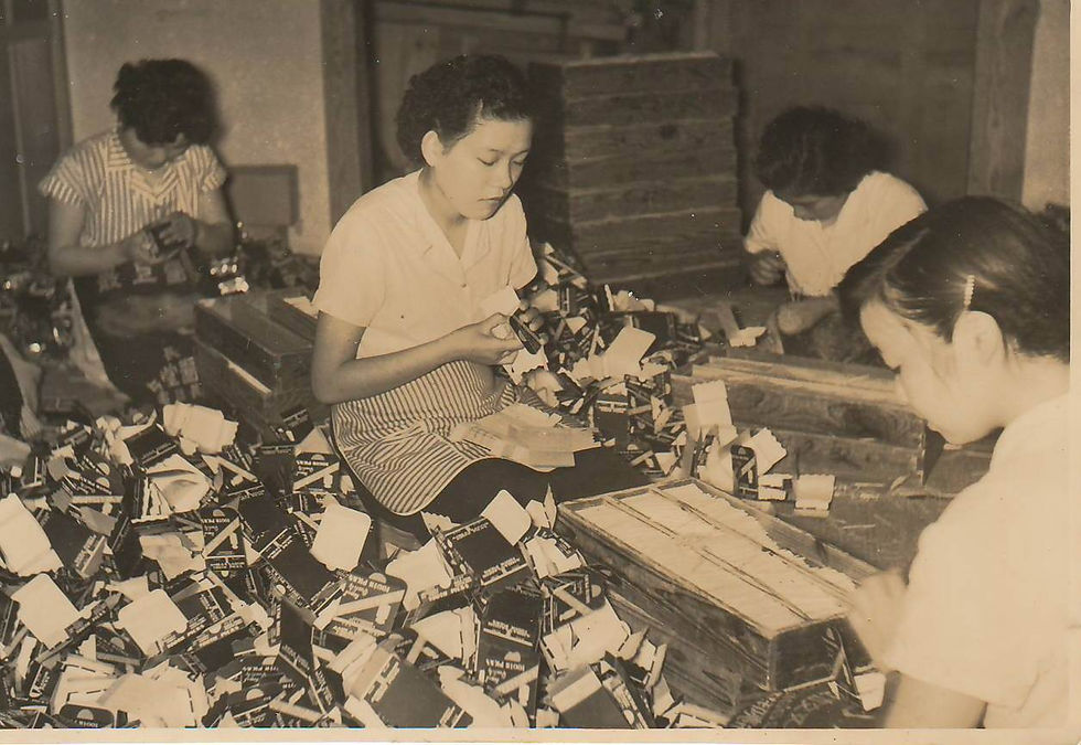 The production process of flat toothpicks in 1955.